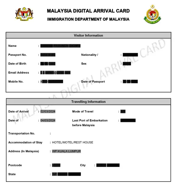 Your Malaysia Digital Arrival Card will be sent to you once your application has been processed.
